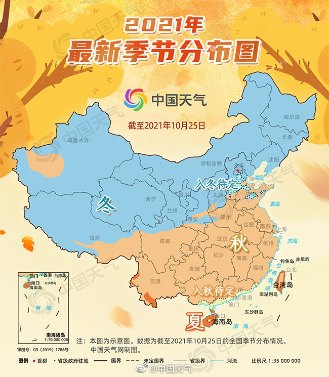 ngày 25 tháng 10 năm 2021, bản đồ quy trình mùa thu và mùa đông quốc gia chỉ để tham khảo và khí hậu năm nay rất khó nói.