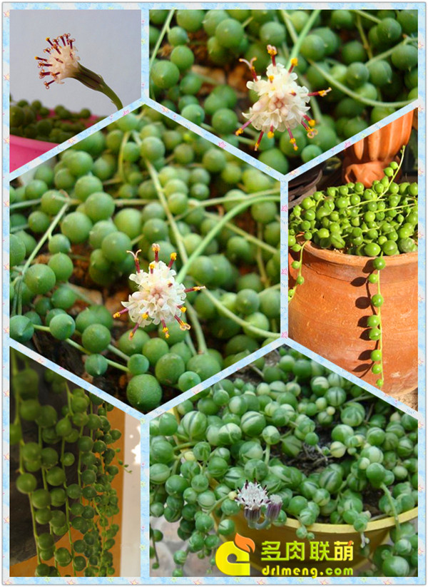 Senecio Rowleyanus là một loại cây mọng nước của họ Asteraceae, còn được gọi là cây nhện ngọc trai, hạt ngọc và hạt Phật giáo tròn (hạt Phật giáo khác với nước mắt của người yêu). Lá chuông màu xanh lá cây mọng nước và biến thành hình cầu, với đường kính khoảng 0,5cm. Có một đường dọc riêng biệt trên lá có kích thước hạt đậu trong mờ. Khi độ ẩm trong lá đặc biệt đầy, đường dọc trong suốt hơn. Các thân cây phát triển dài và leo, với chiều dài lên tới 1m. Chúng có thể được trồng trong các chậu treo để làm cho thân cây và lá lủng lẳng. Chúng giống như những thân cây nho màu vàng vàng, và chúng được treo đều với hơn mười đến hàng trăm lá thịt với màu xanh lá cây và sâu sắc, hạt tròn và đầy đủ, giống như chuỗi tràng hạt Phật giáo làm từ Jasper quý giá, với sự quyến rũ và độc đáo. Vào mùa xuân, mùa thu và mùa đông, hoa hình hoa hình đầu kéo dài từ nách lá và hoa hình ống có màu trắng.