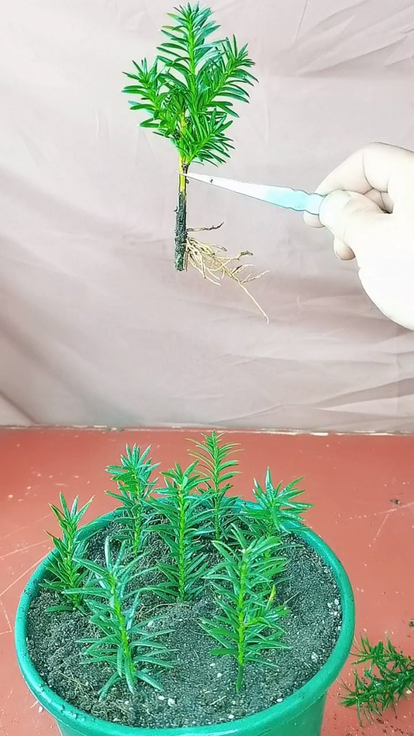 3. Cắt: Khi cắt thủy tùng, đất cần được đổ vào chậu hoa, và sau đó các miếng cắt được chèn vào nó. Nó cần được tưới một cách thích hợp và nhiệt độ phải được giữ ở khoảng 20-30 độ, sẽ bén rễ trong khoảng một tháng.