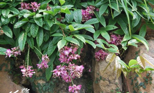 Xianghua vách đá vine là một cây bụi leo với chiều dài 2-5 mét. Thân cây có màu nâu xám, gọt vỏ và cành không có lông hoặc hơi lông. Lá phức tạp, có hình dạng tuyến tính, tờ rơi nhỏ, hình giấy, lanceolate, thuôn để thuôn hẹp; Panicles được phủ lên trên, rộng, hình chuông rộng, màu đỏ tím, cánh hoa lá rộng lớn để đảo ngược hình trứng rộng; vỏ tuyến tính đến thuôn, hạt hình thuôn dài hình gương; Thời gian ra hoa từ tháng 5 đến tháng 9, thời gian đậu quả từ tháng 6 đến tháng 11. Các nhánh cây nho và thân cây điều trị cả Qi và thiếu máu, thiếu phổi và nhiệt, bất lực và tinh trùng, độ đục trắng và cá, v.v. Hình ảnh hình ảnh của Xianghua Cliff Bean Vine
