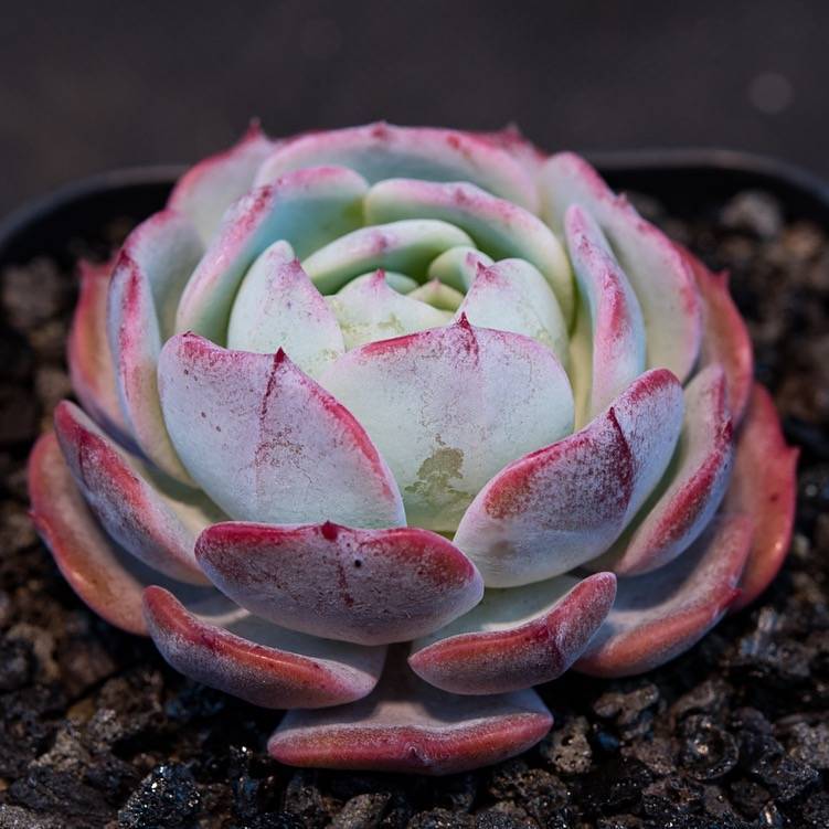 echeveria ‘Edelweiss’ một con lai của các loài mọng nước thuộc chi của họ Cynthaceae, một con lai của Lotus tuyết và Hongyan (E. Laui X E. Secunda ‘reglensis’) Các tính năng: Hình dạng thực vật thẳng, với màu hồng và các cạnh của lá dễ bị đỏ tím. .