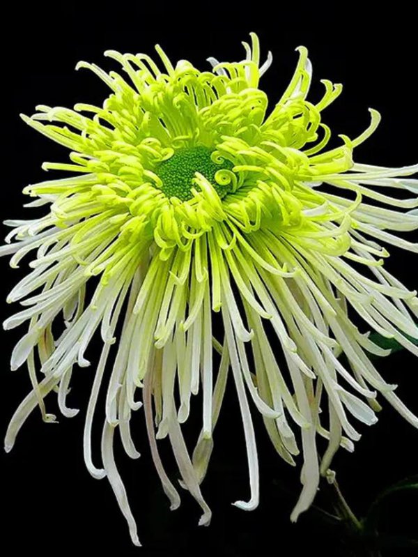 Những cánh hoa của hoa cúc này được cong và có hương vị độc đáo. Một chút màu xanh lá cây là màu xanh lá cây, làm cho mùa thu cuối cùng trở nên lạnh và không thể tự thoát ra.