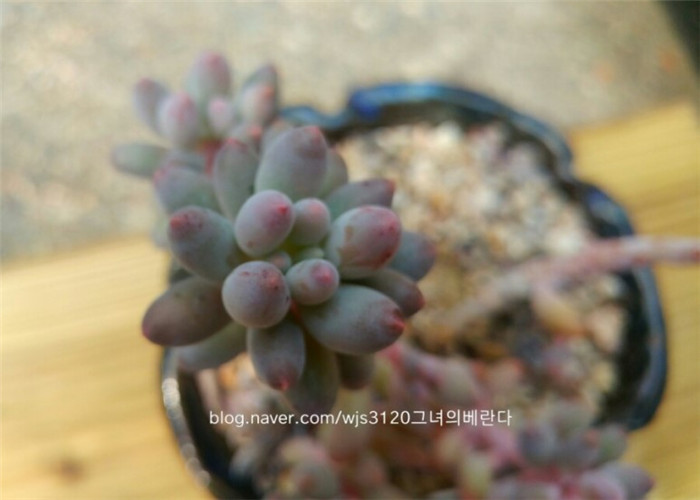 Ngón tay của em bé, với thân cây dày, thịt và phát triển thẳng đứng, cao khoảng 10cm, dài và hình trứng, dày, với một đầu nhọn ở phía trước của lá, một đầu nhọn ở đáy của lá, và một màu trắng màu xanh lá cây đến màu đỏ tím. Bàn tay của em bé chỉ ra trạng thái. Lá có thể có màu hồng và tím, lá có chất béo và tròn, và được sắp xếp theo hình hướng tâm chặt chẽ, và béo như ngón tay của em bé.