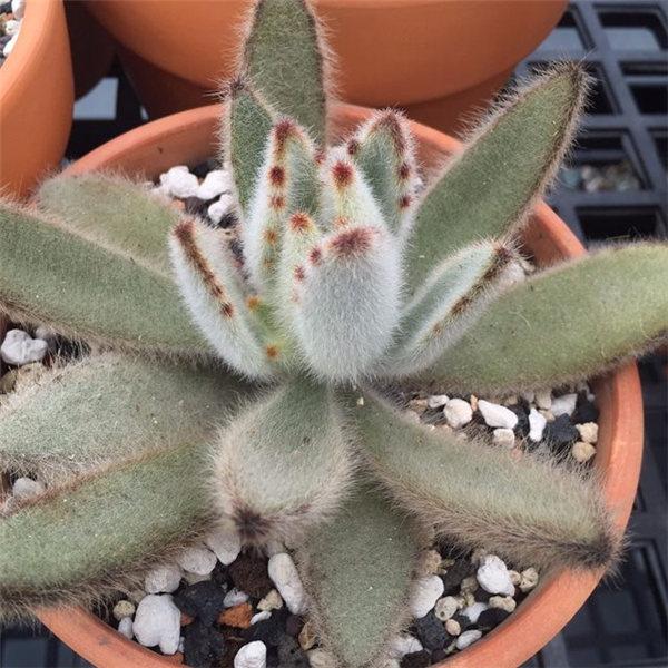 Kalanchoe Tomentosa ‘Super Fuzzy, chi công của Cynthaceae. Tai thỏ có lông có nhiều tóc nhất, tóc dài nhất và mật độ cao nhất. Lá dài hơn và hẹp hơn so với những chiếc ở Angora. Bút kẻ mắt của những chiếc lá cũ là rõ ràng và sẽ được kết nối với nhau. Nội dung trên của tai thỏ lông được trích từ sự ra đời của các giống chó tai thỏ